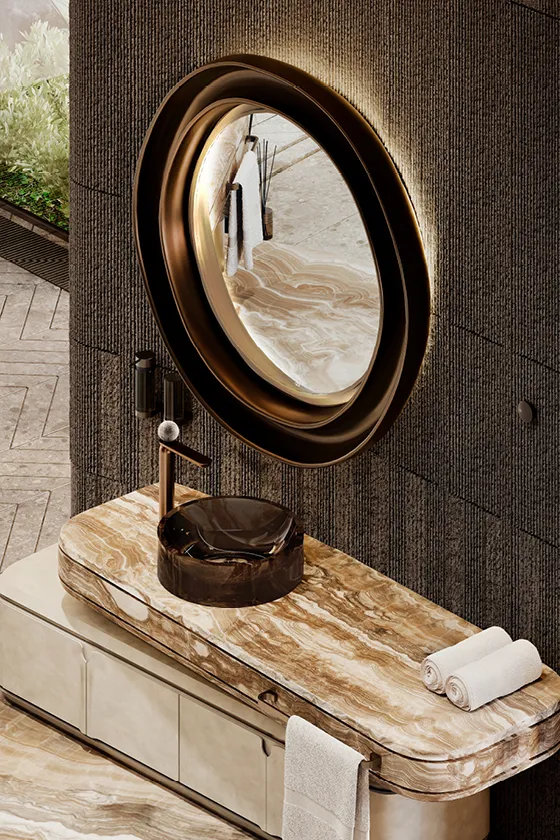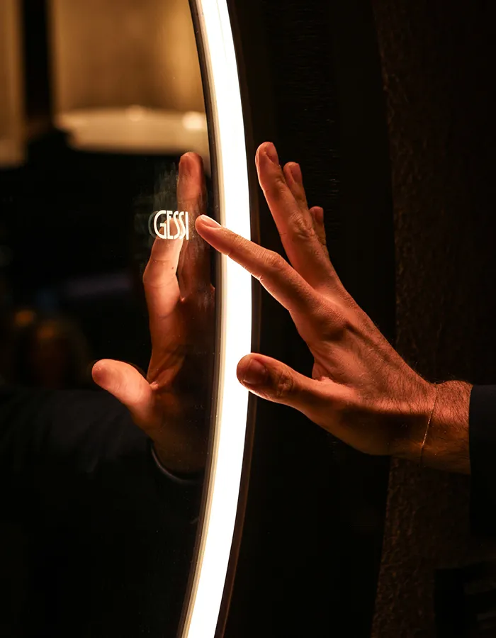 Die künstlerische Sensibilität des Meisters Gennaro Avallone und das technologische Know-how von Gessi verschmelzen in einer Kollektion, die die materielle Forschung und das hochwertige Kunsthandwerk zelebriert. Traditionelle Techniken und Innovation begegnen sich, um Spiegel zu schaffen, die Ästhetik, Funktionalität und Avantgarde vereinen.