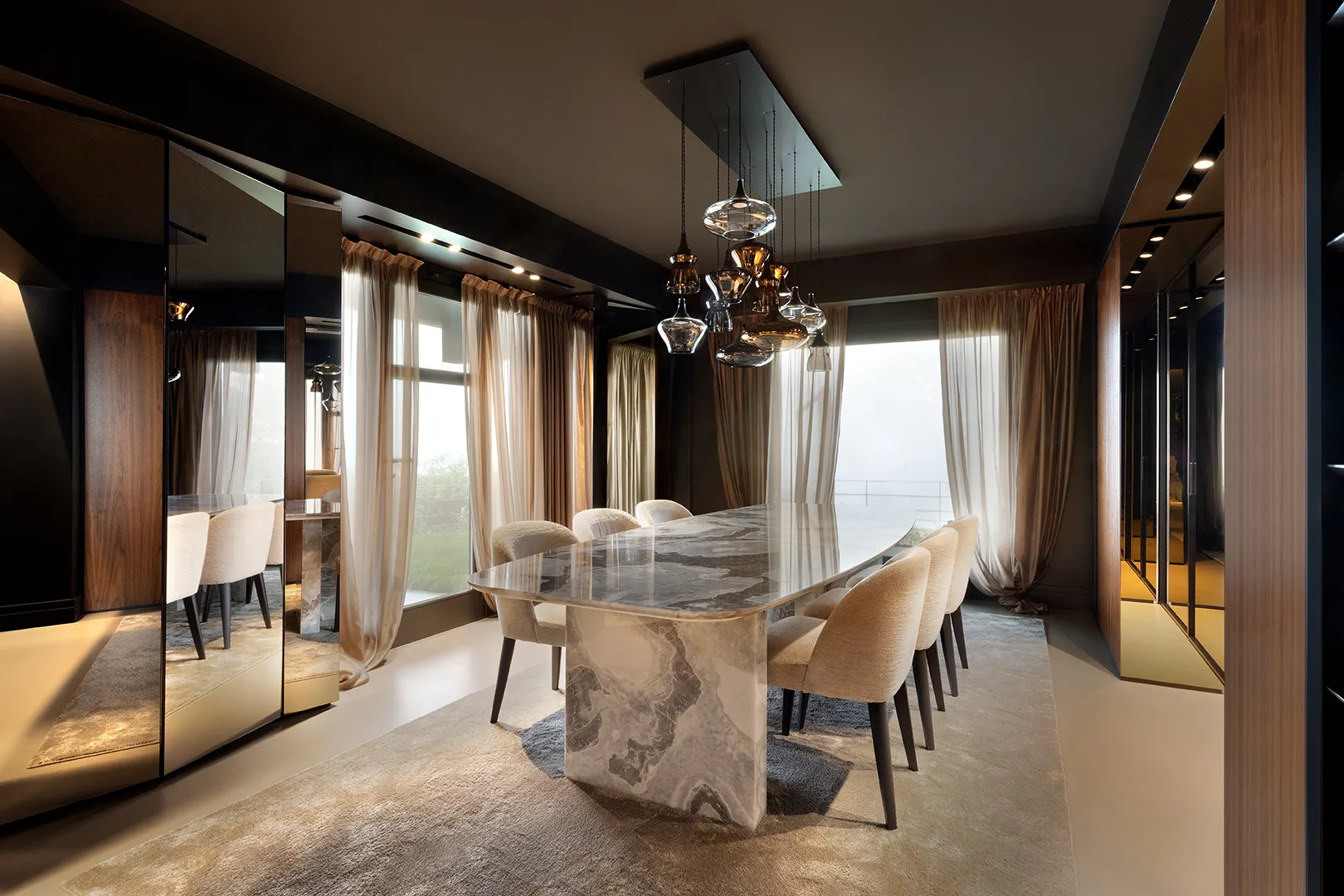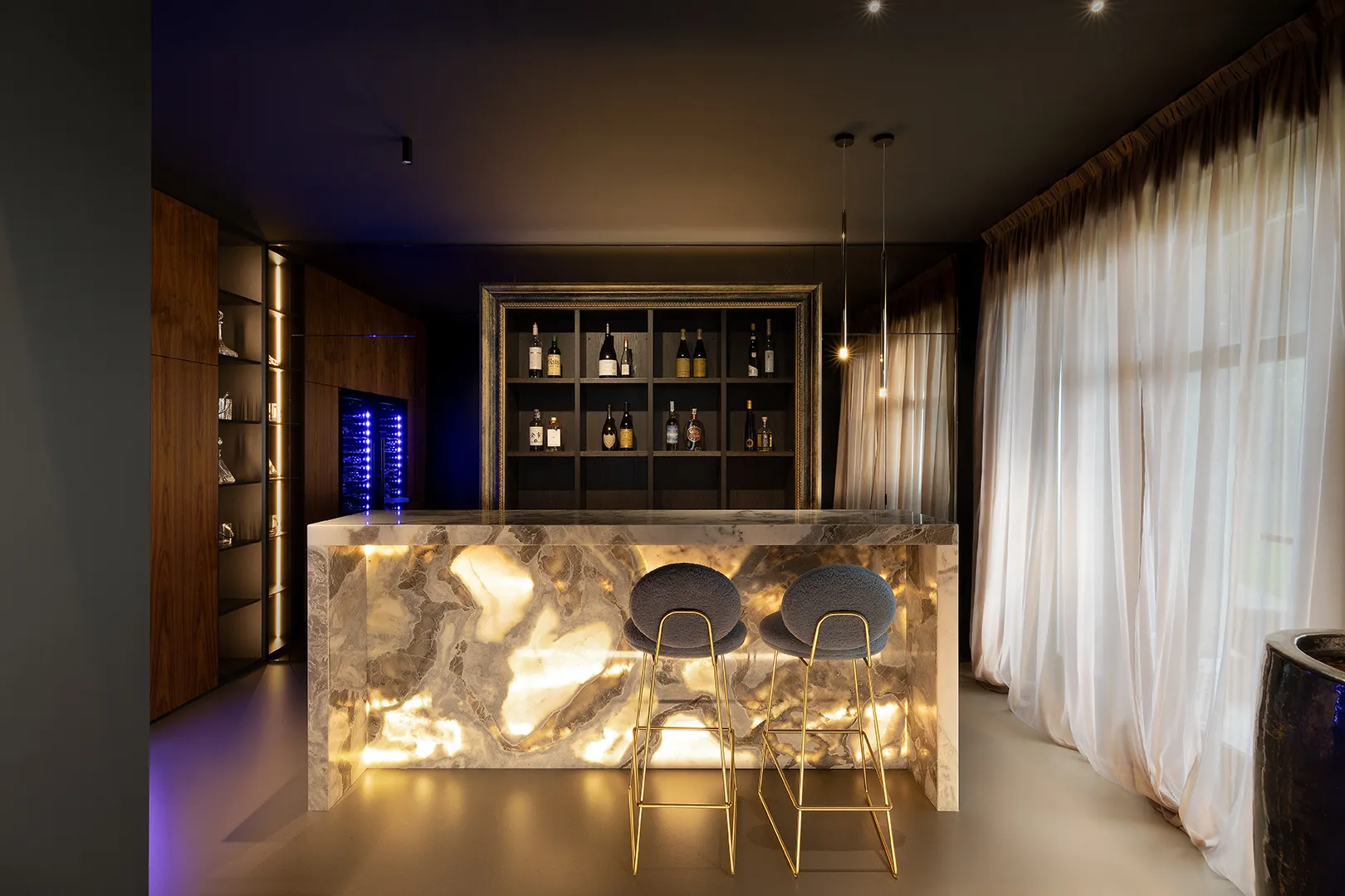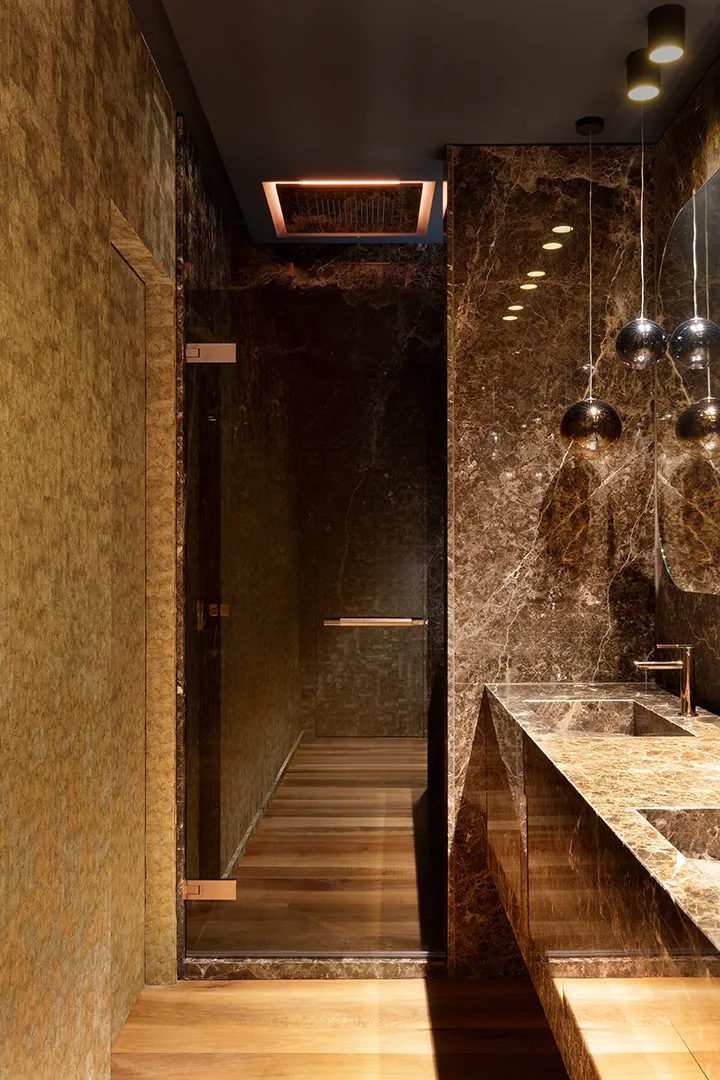Die Residenz Le Vigne, eingebettet in die Hügel von Turin, ist das Ergebnis eines Renovierungsprojekts, das meisterhaft den Charme der Tradition mit der Kraft zeitgenössischer Ästhetik vereint. Die Räume, neu gestaltet, um Funktionalität und Harmonie zu gewährleisten, zeichnen sich durch einen entschiedenen und raffinierten Charakter aus. Eine strategische Entscheidung war die Wahl der Gessi-Kollektionen: Afilo, Ingranaggio Anello, Shower G, die Private Wellness-Wasserfälle, Tremillimetri und Rilievo werden zu Protagonisten der architektonischen Sprache. Nicht einfache Ergänzungen, sondern wahre Designinstrumente, die die Philosophie des Projekts verkörpern: technologische Innovation, formale Reinheit und Sinnlichkeit zu vereinen. Die minimale Präzision von Afilo, die Ausdruckskraft von Rilievo, die szenografische Flüssigkeit der Wasserfälle und die extreme Leichtigkeit von Tremillimetri treten in Dialog mit der Materialität der Marmore und der warmen Eleganz des nationalen Nussbaums und schaffen einzigartige Räume voller Intensität und Atmosphäre. Schwarze Wände und Decken, sorgfältig abgestimmte Beleuchtung und ausgewählte Designmöbel vervollständigen einen Kontext, der die Identität der Residenz hervorhebt: ein exklusiver Raum, in dem jedes Detail – von den Oberflächen bis zu den von Gessi signierten Wasserelementen – Gleichgewicht, Persönlichkeit und Leidenschaft für Design ausdrückt. Photo credits: Barbara Corsico
