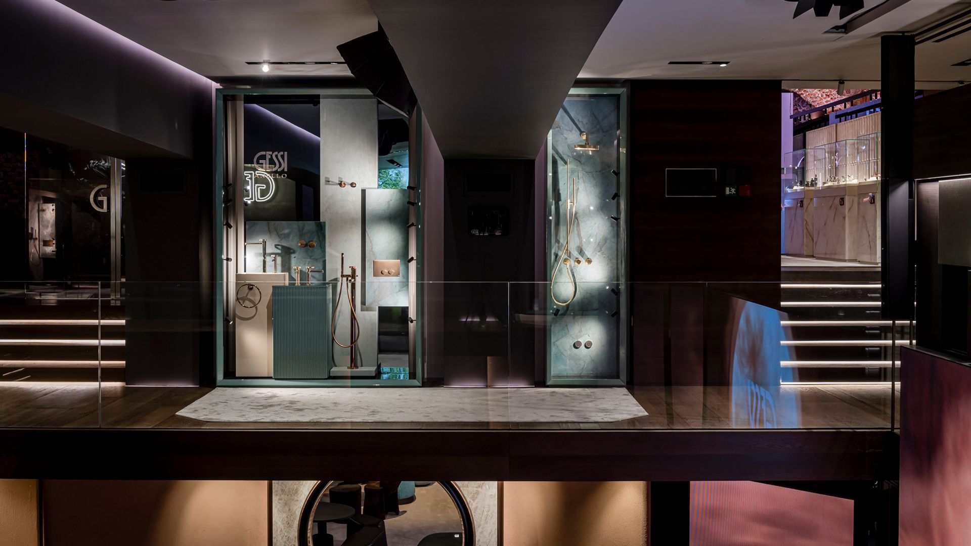 The Gallery transforms into a space entirely dedicated to Gessi’s iconic Bathroom collections, through an exhibition experience that narrates the aesthetic research and design vision behind each creation. Scenic trunks, contemporary portals, and curated settings alternate to build a dynamic narrative, capable of enhancing materials, details, and compositional possibilities, showing how each element can integrate harmoniously into a complete and sophisticated space.