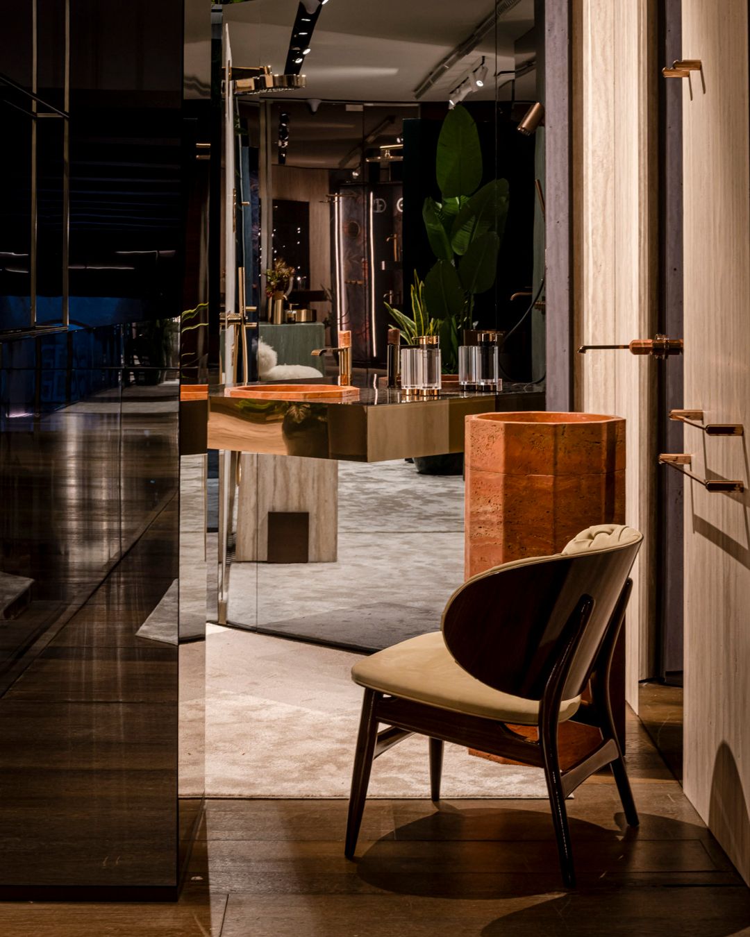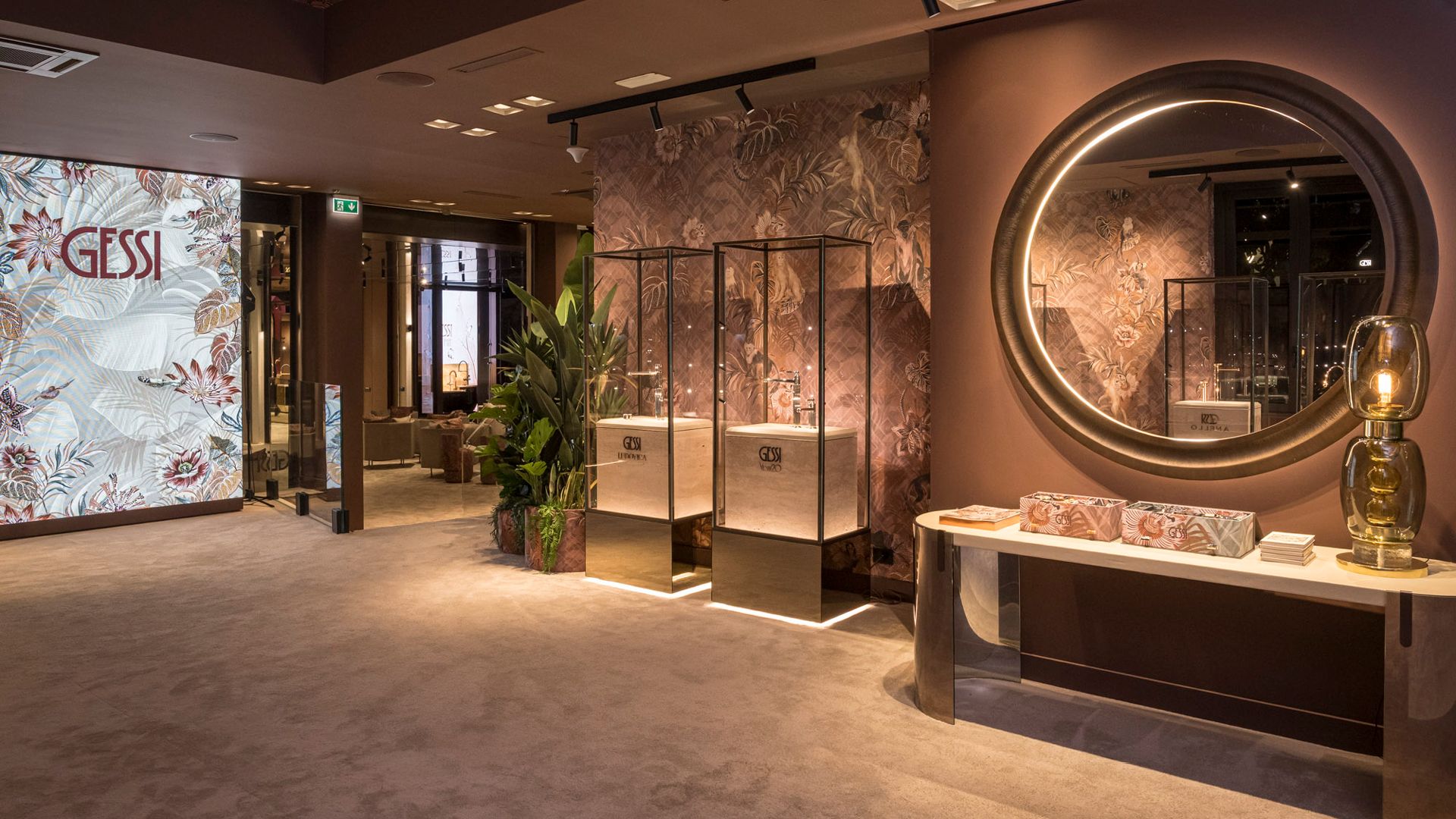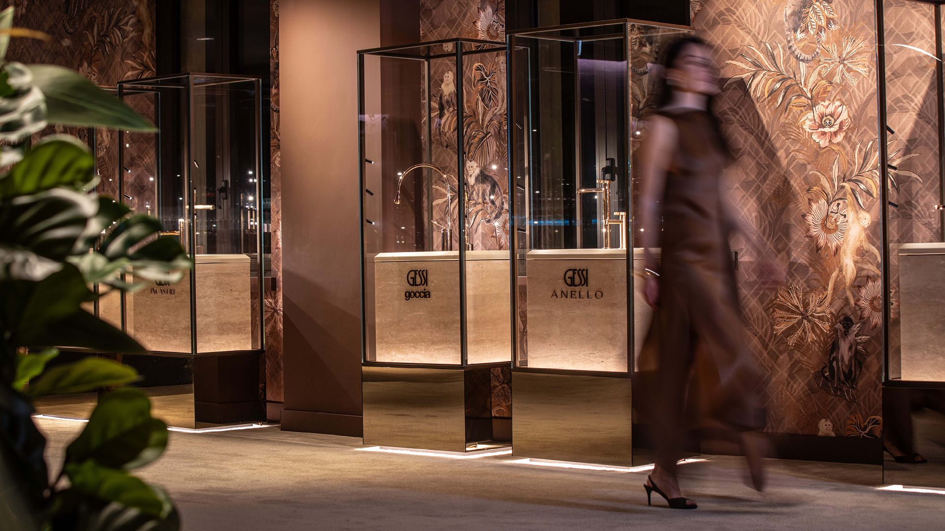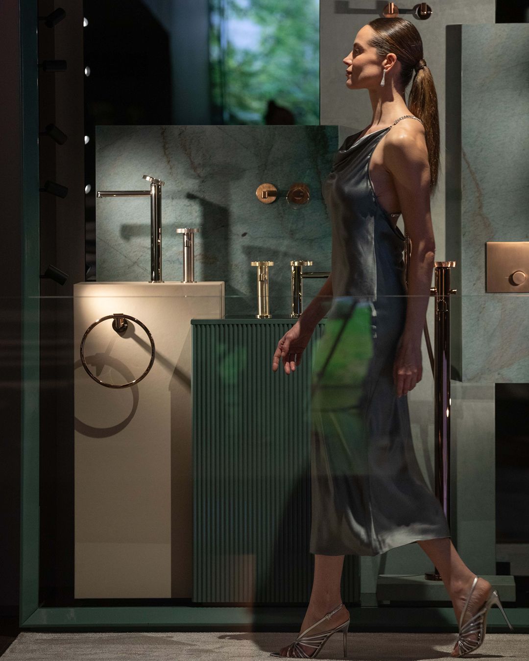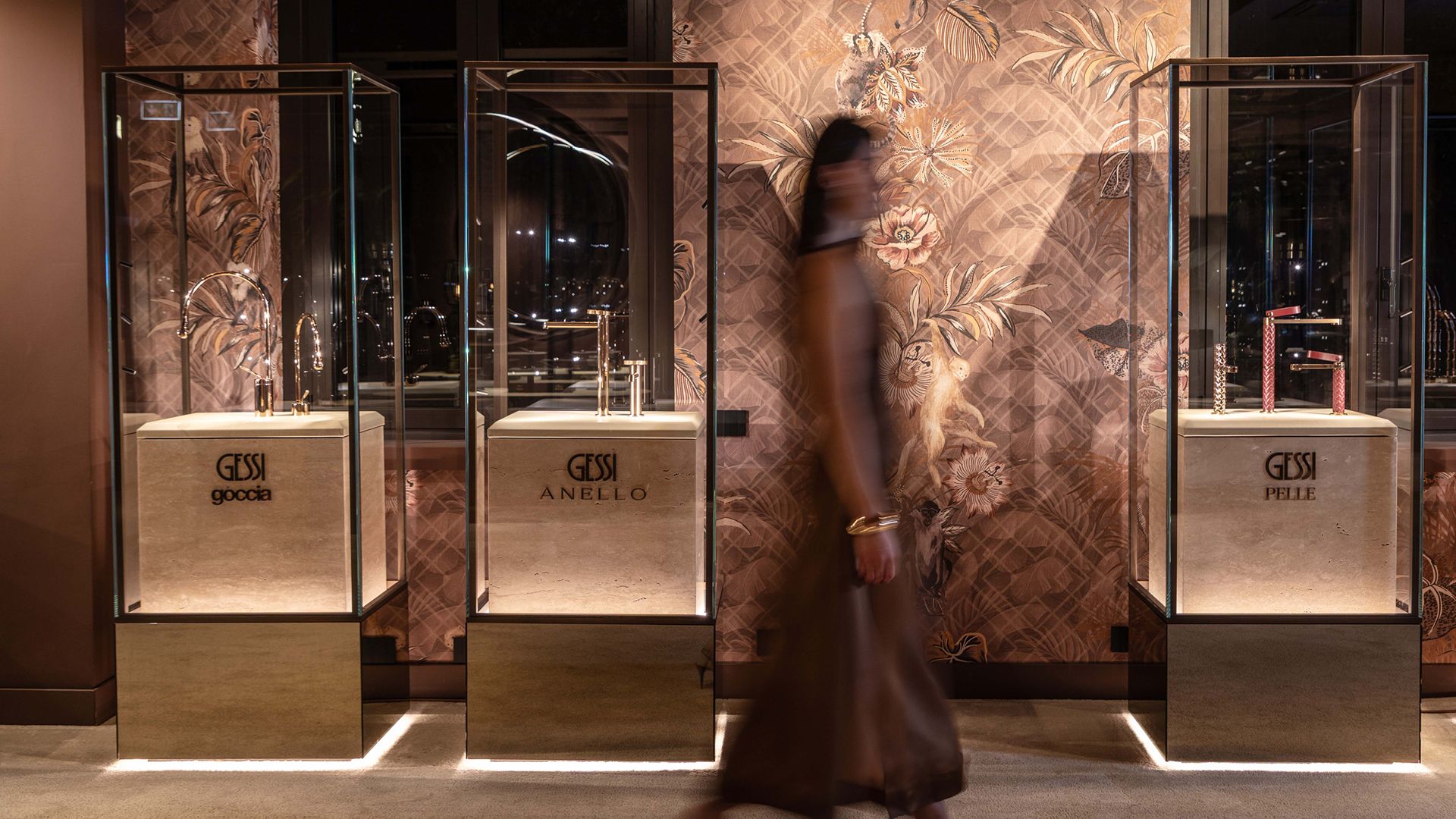 The Casa Gessi Milano experience opens with a space designed to welcome: display windows with a museum-inspired aesthetic showcase some of Gessi’s most iconic collections, shaping the environment with the elegance of a fine jewelry boutique.