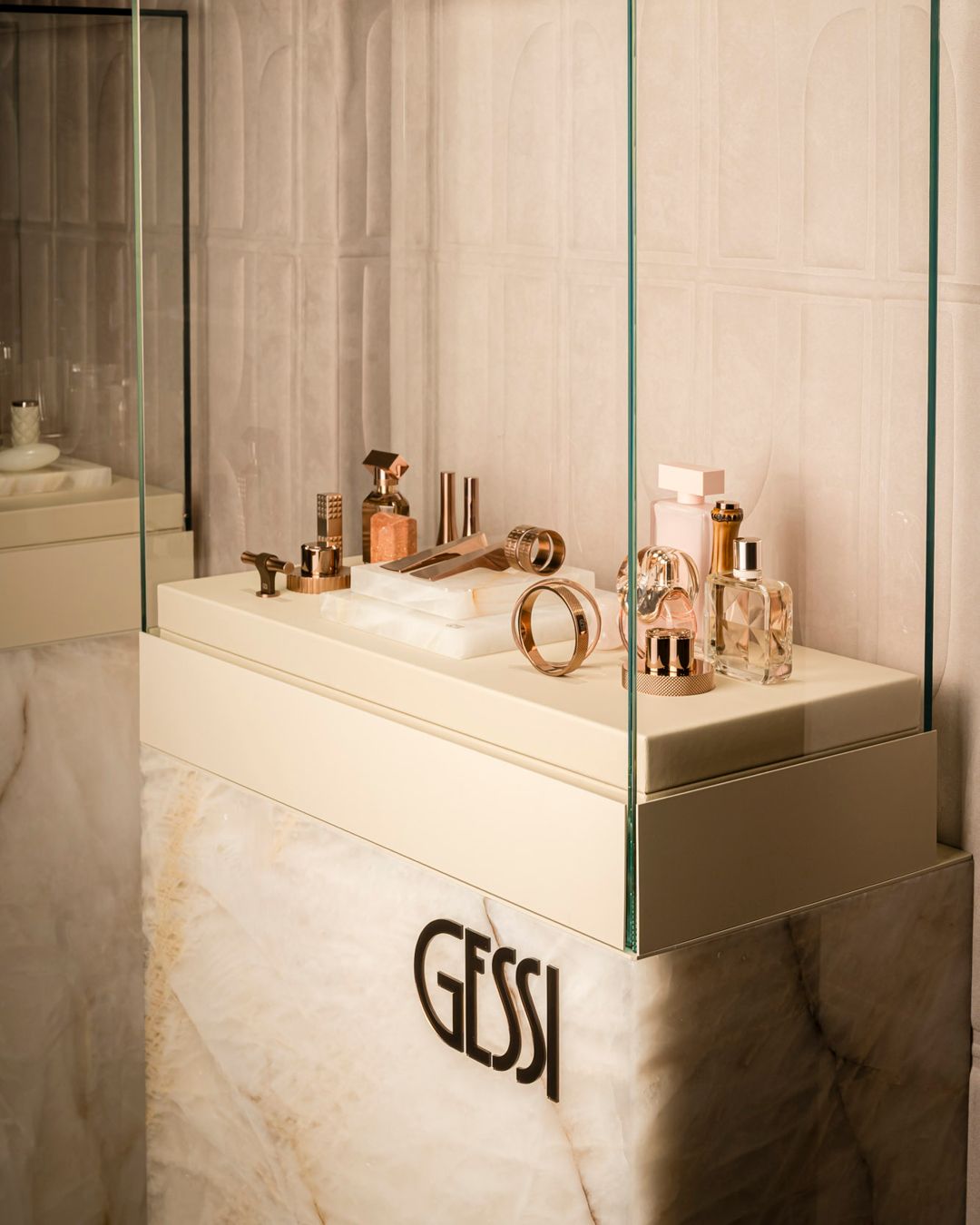 The Finishes Boutique emerges as a true jewelry of materials, an immersive space where the chromatic worlds of Gessi finishes are arranged into six precious display cases, engaging in a dialogue with the language of beauty, through colors, textures, and evocative inspirations. Fragrances, cosmetics, and personal care objects, selected for their material and sensory affinity, are presented alongside Gessi’s material proposals, opening up new design possibilities. The result is a portrait of the self: choosing a finish becomes an act of identity expression and a reflection of one’s own way of interpreting the space dedicated to personal care rituals.