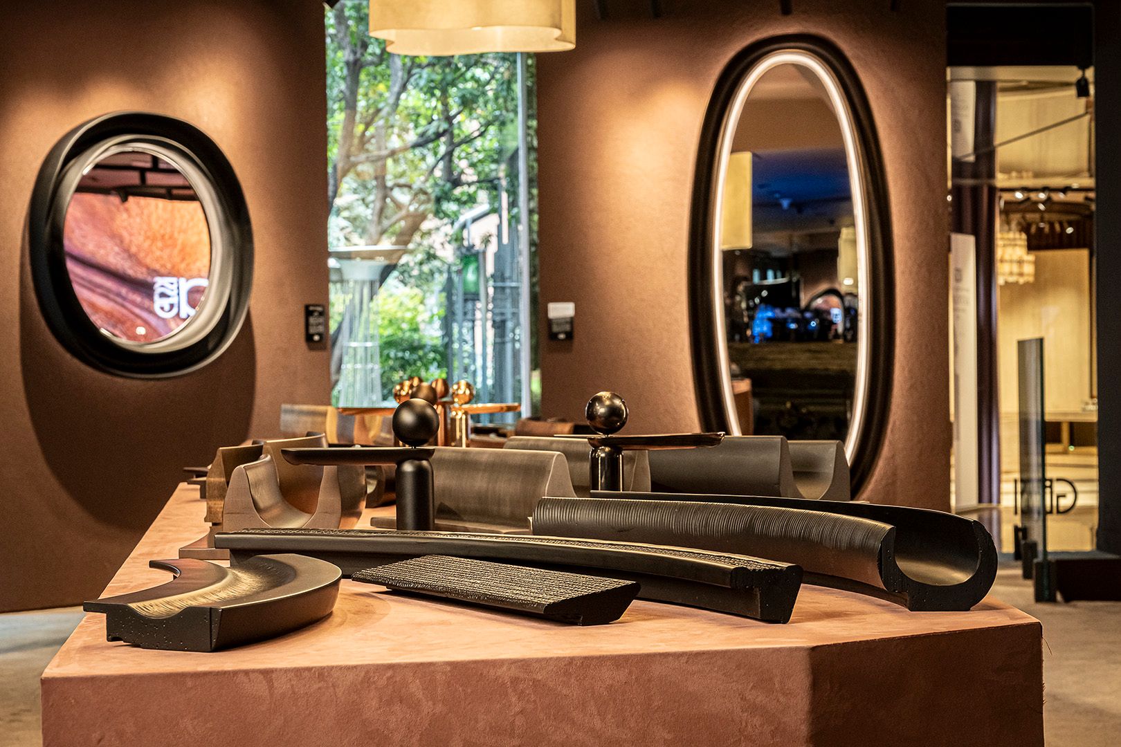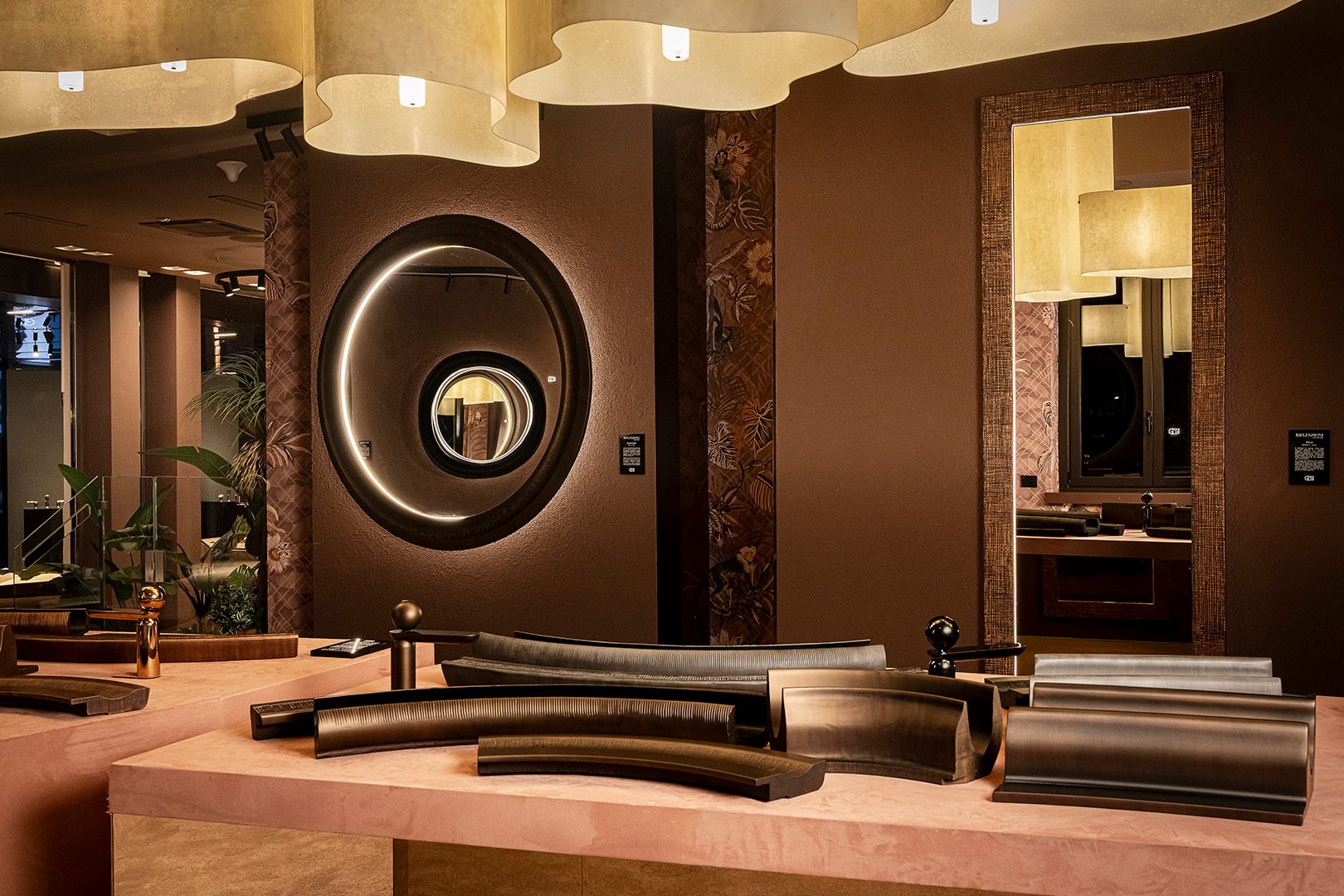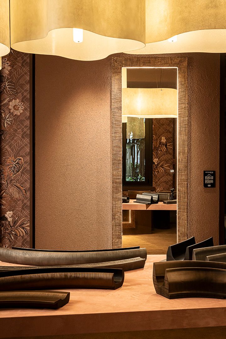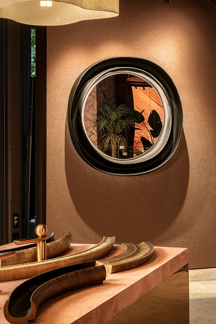 Born from the collaboration with maestro Gennaro Avallone, Riflessioni presents itself as a masterpiece of material art, where functionality dissolves to make space for an emotional language made of sculpted surfaces, reflections, and visual memories. The frames become symbolic structures that welcome the gaze and guide its narrative—enhancing what the mirror reflects. Each creation is a living work that speaks of aesthetics and identity. The textures, worked metals, and finishes make every frame a unique sensorial experience that satisfies the eye and invites touch.