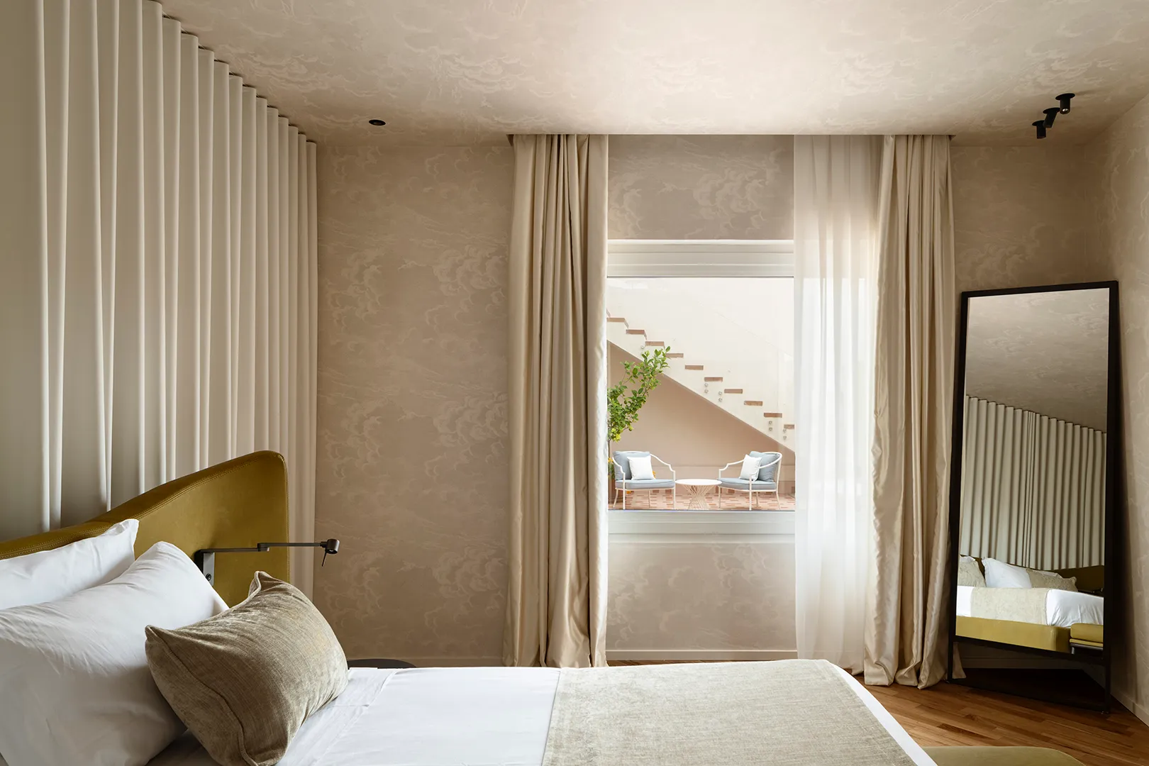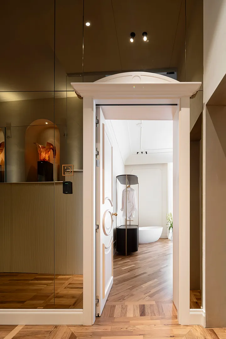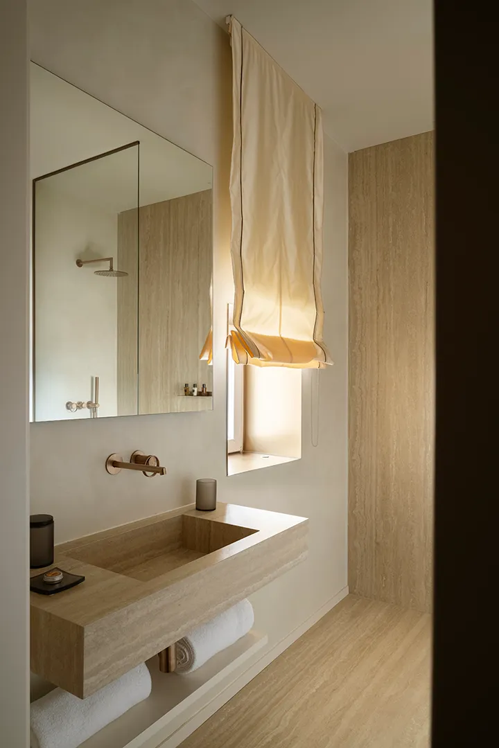 Nestled in the heart of Trani, overlooking the historic Piazza Dogali and just steps from the sea, Palazzo Dogali Suites Collection interprets contemporary luxury as a measured dialogue between architectural memory, natural light, and refined hospitality. The historic residence has been carefully restored in respect of its original identity, giving rise to intimate and sophisticated spaces where history and comfort coexist in perfect balance. Within the bathrooms, Gessi complements this vision through the Anello collection in a Gold Brush finish. Its soft lines and circular motif engage in a harmonious dialogue with the materials and tones of the interiors, helping to shape a warm and elegant aesthetic. The presence of water becomes an integral part of the experience, transforming everyday gestures into rituals of wellbeing. The wellness journey is completed by the Private Wellness system with waterfall spout, turning the flow of water into a fully immersive, sensory experience that reflects the intimate character of the project. Palazzo Dogali reveals itself as an exclusive retreat suspended between sky and sea, where contemporary design is delicately woven into a historic setting, shaping an idea of luxury that is authentic, understated, and deeply connected to its place.