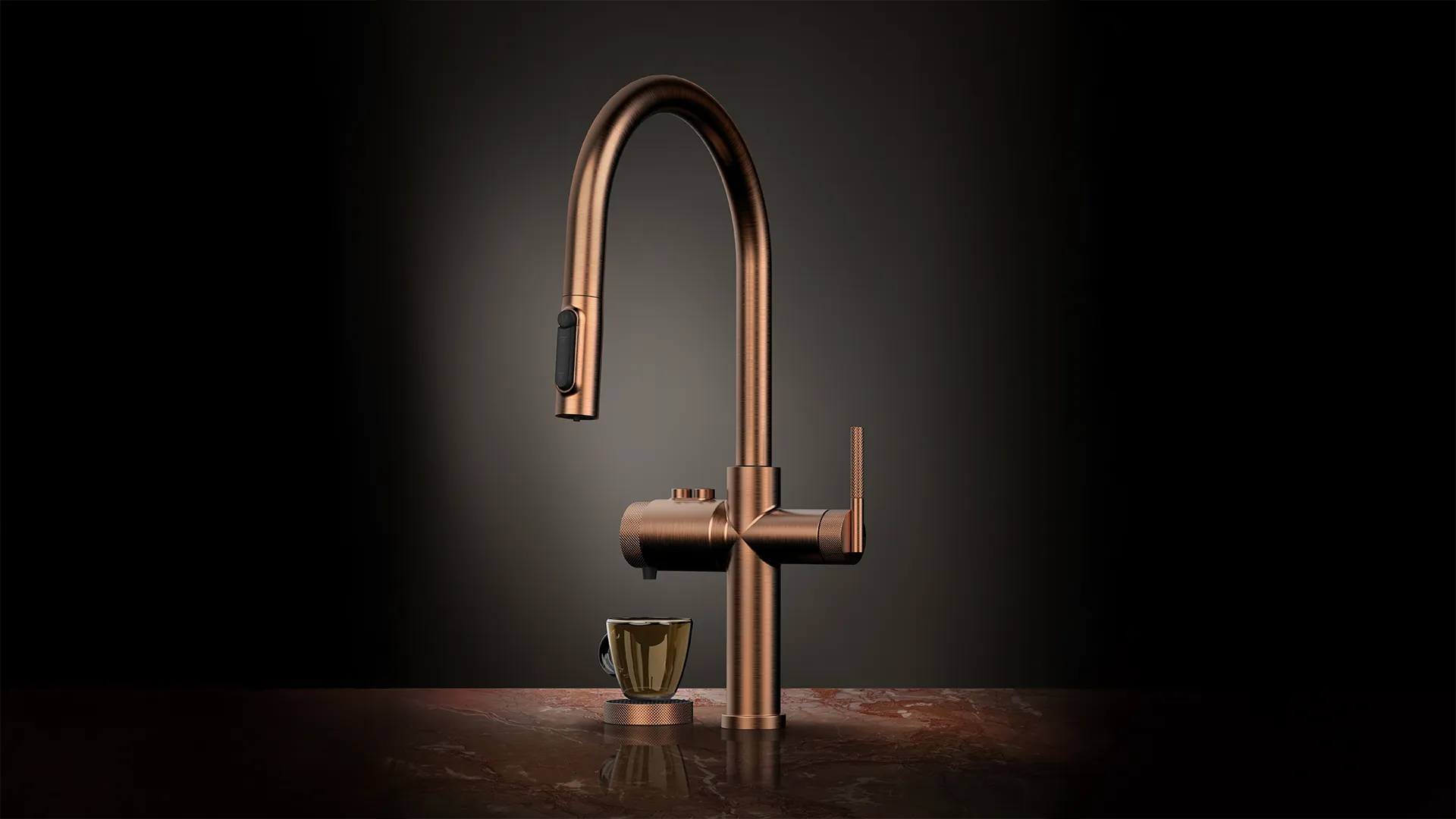 La función café, con dos tipos de dispensación activables mediante botón, se aplica también a uno de los productos más apreciados del mercado.