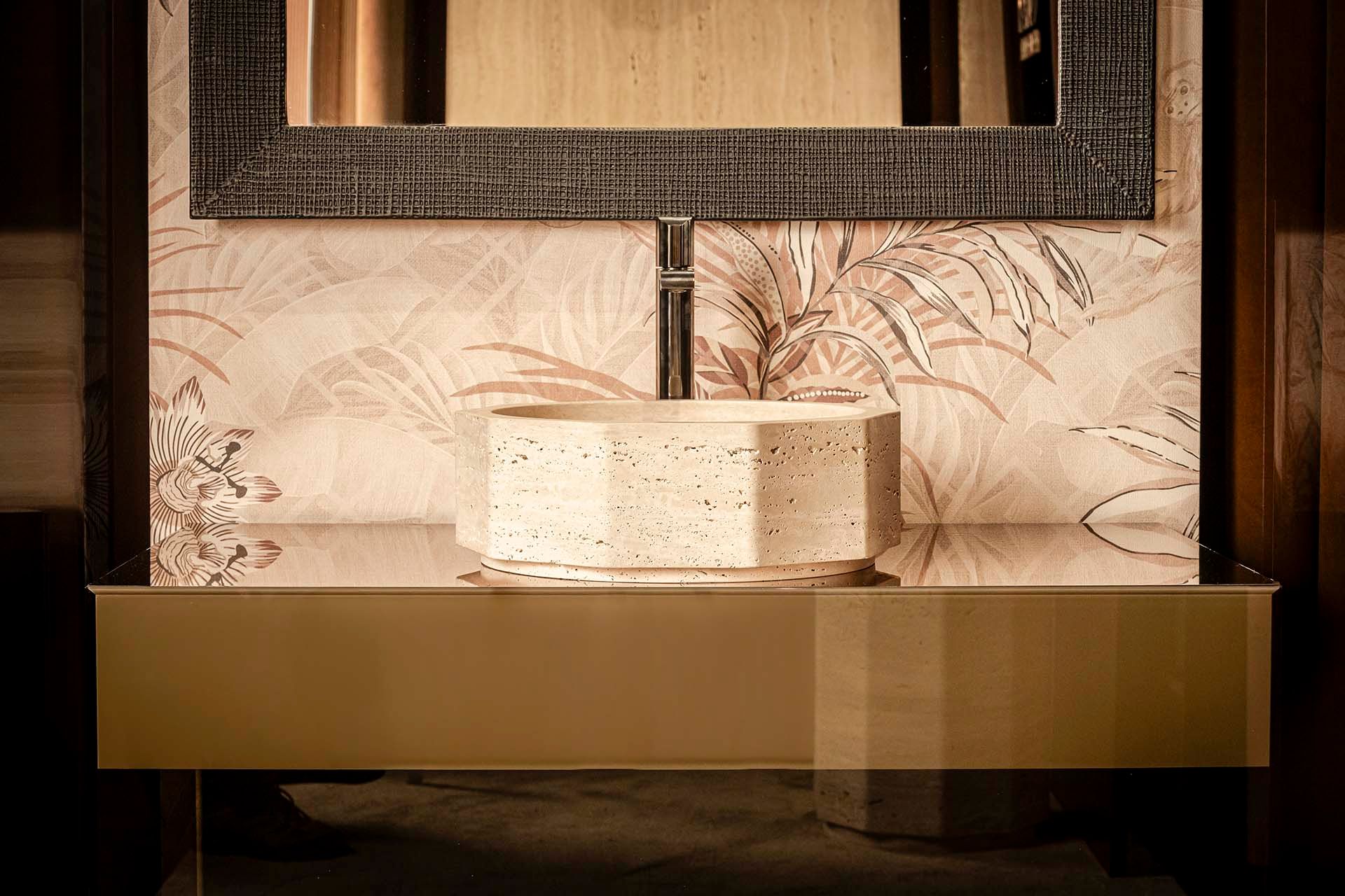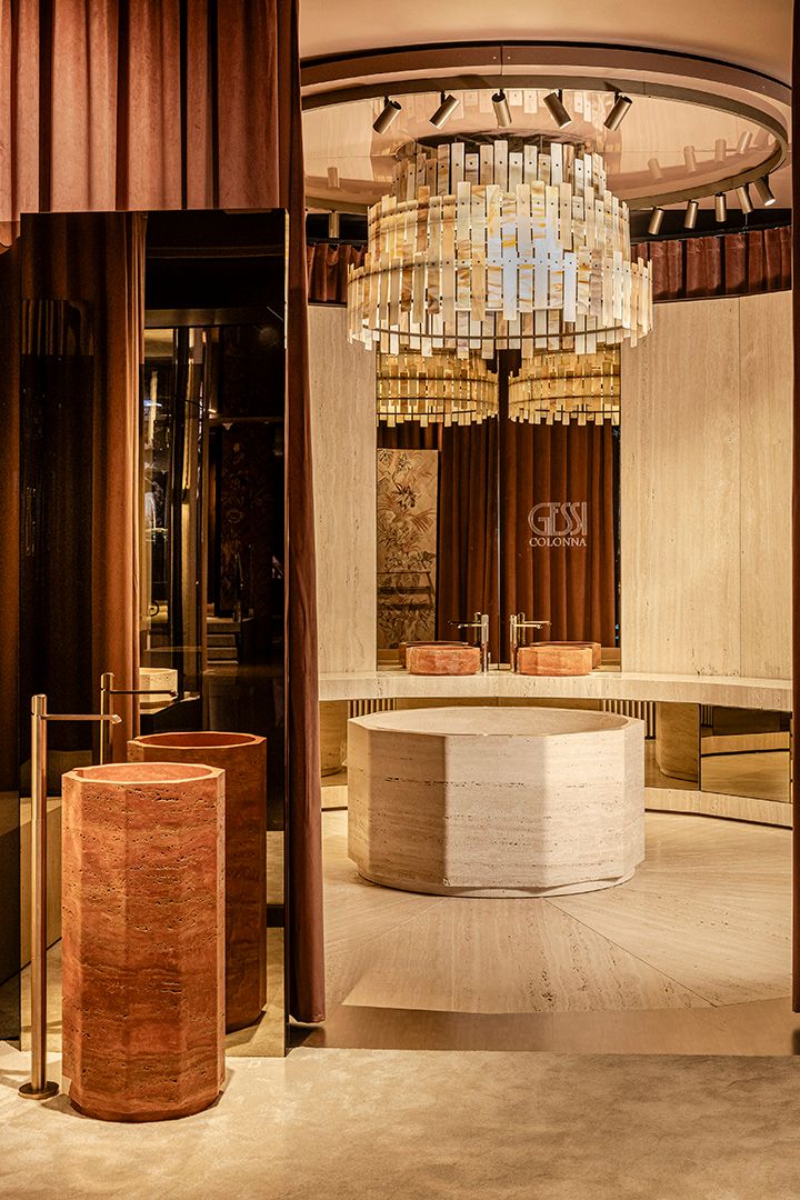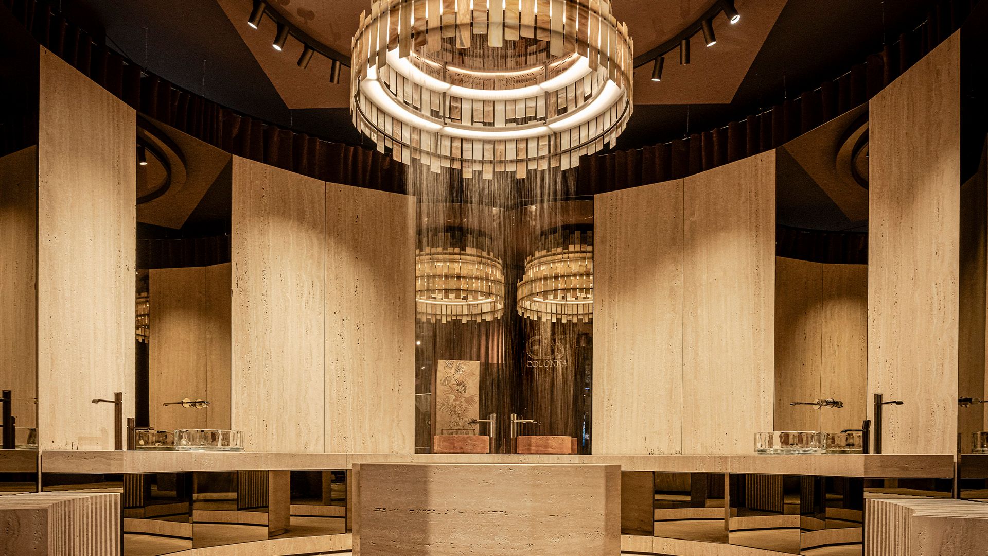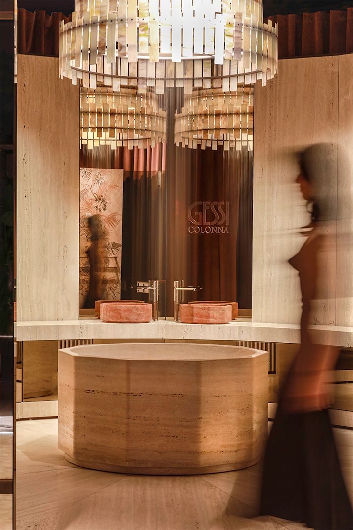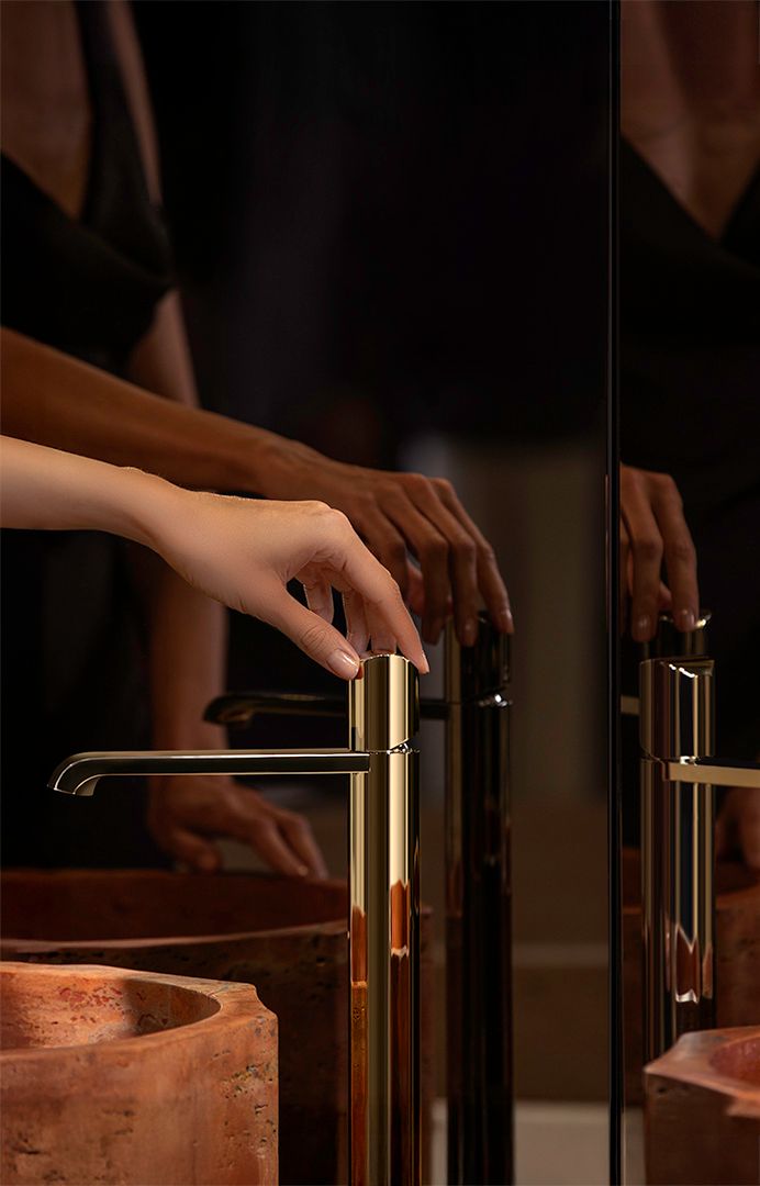 The Colonna collection, the result of collaboration with David Rockwell, is an ode to architecture. Travertine and crystal-glass give life to a powerful and poetic visual scenography, where the bathroom is reinterpreted as a sanctuary of well-being. Colonna is the symbol of a new vision: bold, sculptural, sophisticated. An installation that demonstrates Gessi’s ability to elevate the functional object to a work of art.